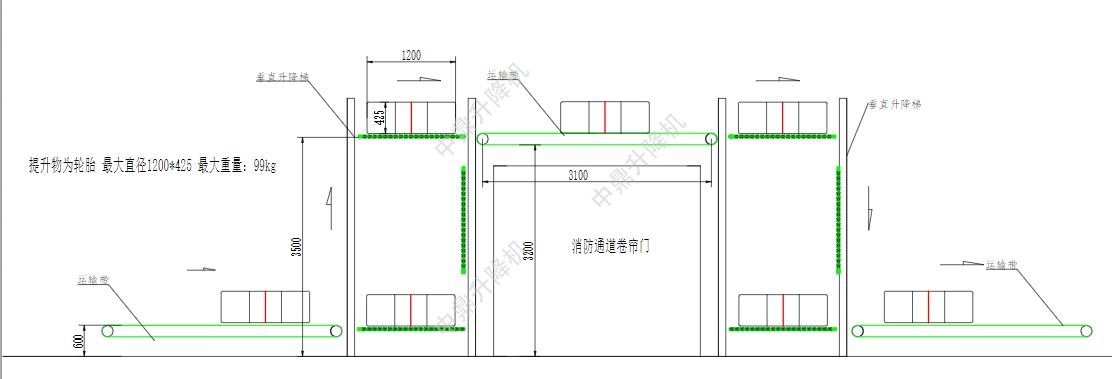 跨越走廊空中输送线叉臂循环提升机