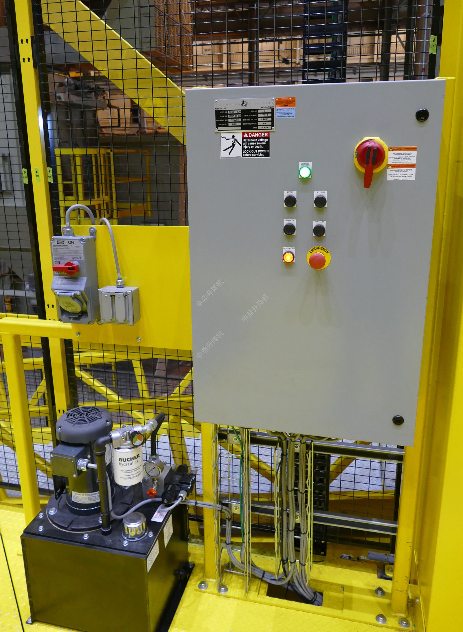 操作员控制面板位于平台上,使技术人员能够在工作时轻松更改高度和宽度。垂直装配平台由2.3米高的防护装置包围,地板上安装了石墨黑网。同样的防护装置排列在平台本身上。防护推拉门上的锁定机制增加了在高空作业时的安全机会。坠落安全开关和限位开关还可以保护员工和产品免受伤害。